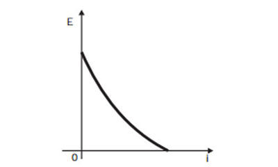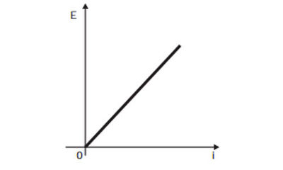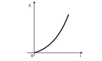 Considerando as características apresentadas, qual dos gráficos a seguir representa a relação entre a energia consumida (\(E\)) por um chuveiro elétrico e a corrente elétrica (\(i\)) que circula por ele?