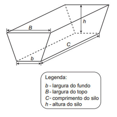 Na alimentação de gado de corte, o processo de cortar a forragem, colocá-la no solo, compactá-la e protegê-la com uma vedação denomina-se silagem. Os silos mais comuns são os horizontais, cuja forma é a de um prisma reto trapezoidal, como mostrado na figura.