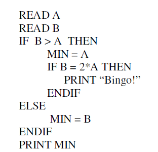 De acordo com o pseudocódigo ao lado, quantos casos de testes são necessários para alcançar a cobertura de desvio?
