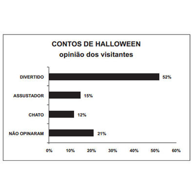 O administrador do blog irá sortear um livro entre os visitantes que opinaram na postagem “Contos de Halloween”. Sabendo que nenhum visitante votou mais de uma vez, a probabilidade de uma pessoa escolhida ao acaso entre as que opinaram ter assinalado que o conto “Contos de Halloween” é “Chato” é mais aproximada por