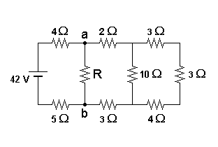 Assinale a alternativa que contém, respectivamente, os valores da resistência R e da diferença de potencial entre os pontos a e b, sabendo que a potência dissipada no resistor de 5Ù é igual a 45W.