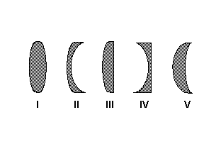 as lentes I, II e III podem ser úteis para hipermetropes e as lentes IV e V para míopes.