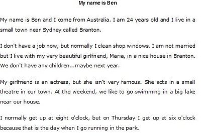 3. True or False. I) Ben lives in Sydney, Australia. II) Ben is 26 years old. III) Ben's normal job is cleaning windows. IV) Ben is single.