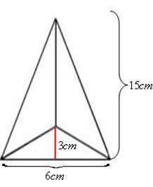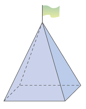 O prefeito de uma cidade pretende colocar em frente à prefeitura um mastro com uma bandeira, que será apoiado sobre uma pirâmide de base quadrada feita de concreto maciço, como mostra a figura. Sabendo-se que a aresta da base da pirâmide terá 3 m e que a altura da pirâmide será de 4 m, o volume de concreto (em m³) necessário para a construção da pirâmide será: