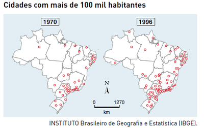 Analisando os mapas que ilustram o processo de urbanização do território brasileiro ao longo da última metade do século XX, pode-se afirmar que:
