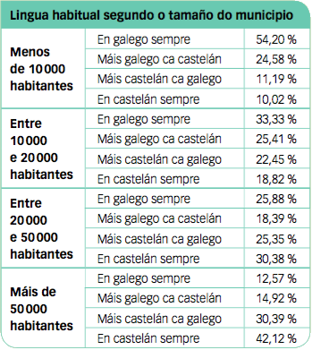 Os datos do cadro amosan que, canto [blank_start]maior[blank_end] é o tamaño do concello en poboación, menor é o número de persoas que falan galego. Pero hai máis: