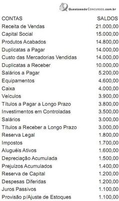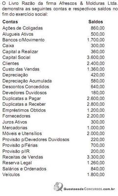 A Cia. de Solas e Solados apurou no livro Razão, ao fim do exercício, mas antes do encerramento das contas de resultado, os valores listados a seguir:
