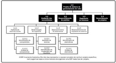 (CESGRANRIO/PETROBRÁS/TRANSPETRO/ANALISTA DE SISTEMAS JÚNIOR - ÁREA SOFTWARE/2011) A criação da Estrutura Analítica de Projeto (EAP) consiste em subdividir as entregas e o trabalho do projeto em componentes menores e de gerenciamento mais fácil. A EAP consiste em uma decomposição hierárquica orientada às entregas do trabalho, sendo que cada nível descendente da EAP consiste em uma representação mais detalhada do trabalho a executar.