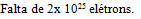 Um corpo foi eletrizado positivamente com uma carga elétrica equivalente a 3,2x10-6 C. Dado: Carga elementar igual a 1,6 x 10 -19 C. Nesse corpo há: