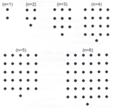 Mantendo esta disposição, a expressão algébrica que representa o número de pontos N em função da ordem n (n = 1, 2,...) é:
