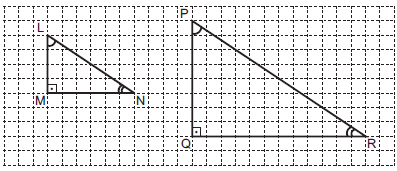 Laura desenhou, na malha quadriculada abaixo, os triângulos LMN e PQR que são semelhantes.