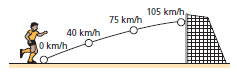 de futebol, assinalando, ao lado da trajetória, a velocidade instantânea