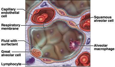 O surfactante é produzido por células dos alvéolos pulmonares (pneumócitos tipo 2) e reduz a tensão superficial. Assim, os alvéolos são facilmente inflados, o que facilita e universaliza a respiração.