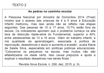 Pelo Texto 2, podemos concluir que uma das “pedras no caminho escolar” é: