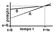 (UFCE) Dois veículos, A e B, se movem ao longo de uma estrada horizontal e reta e suas posições variam com o tempo conforme o gráfico mostrado abaixo.