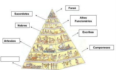 Observe a pirâmide social do povo egípcio. A classe social dos [blank_start]escravos[blank_end] é a que está faltando na pirâmide.