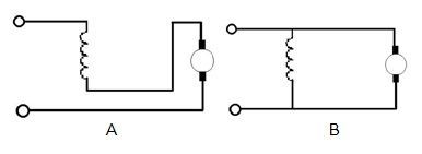Em A, a corrente que circula no campo é diferente da corrente que circula na armadura