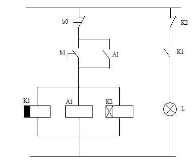 Considerando o diagrama de comando ao lado com o circuito energizado, ao acionarmos b0, como se comporta a lâmpada L?
