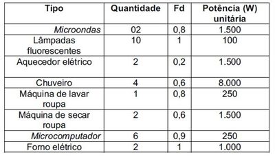Um eletricista foi contratado para dimensionar o cabo de entrada de uma residência. Os equipamentos da residência são os descritos na tabela abaixo.