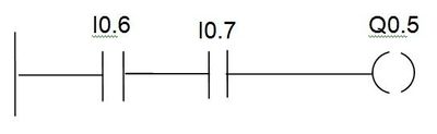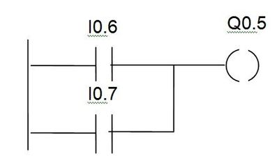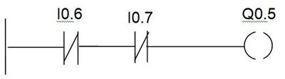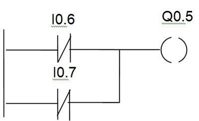 Uma sala possui duas portas P1 e P2. Você recebeu a incumbência de desenvolver um programa em linguagem ladder para que seja possível acender uma lâmpada quando ambas as portas forem abertas, caso qualquer porta esteja fechada a lâmpada deve estar apagada. Considere um sensor S1 “NA” e um sensor S2 também “NA” instalados respectivamente nas portas P1 e P2, que serão acionados quando as portas estiverem fechadas. O sensor S1 enviará informação para a entrada I0.6, enquanto o sensor S2 enviará informação para a entrada I0.7, a lâmpada deve ser comandada pela saída Q0.5.