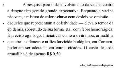 Considerando que, no texto acima, foi introduzido um erro gramatical, assinale a opção que identifica esse erro.