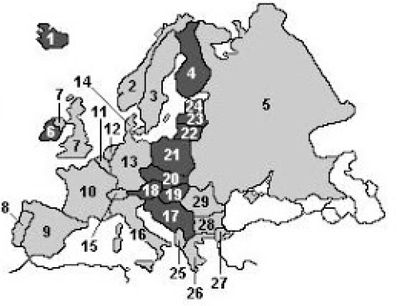 O mapa que segue mostra a divisão política da Europa após a Primeira Guerra Mundial. Após observar o mapa, marque a alternativa que identifica o número no mapa que nos revela a posição da Alemanha.