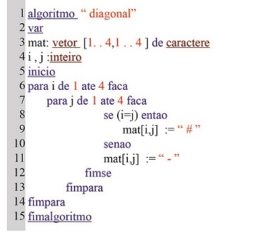 O algoritmo abaixo foi criado com o objetivo de preencher uma variável multidimensional denominada "mat".