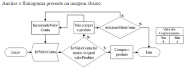 se(lerValorConta = S; então Não compra o produto; senão AdicionaValorConta)