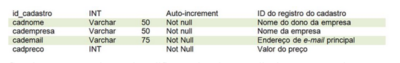 Em uma documentação técnica do dicionário de dados do sistema de patrocinadores da Copa do Mundo, foi diagnosticado um erro no sistema de cadastro de empresas parceiras ao gravar os dados de dados conforme visualizado no quadro a seguir: