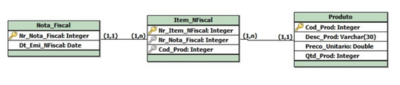 A empresa Pais e Filhos e Molhados deseja informatizar a emissão de suas notas fiscais, para tanto elaborou, junto ao analista de sistemas, a modelagem de seu banco de dados. Diante de suas necessidades, foi acordado que a modelagem final do banco deve obedecer ao modelo lógico apresentado a seguir.