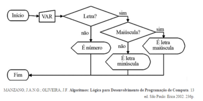Com base nesse fluxograma é possível identificar a existência da seguinte condição lógica (condição ; se verdadeiro ; se falso)