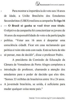 d) O texto tem estrutura dissertativa, sendo as passagens entre aspas transcrições de discursos contrários às eleições aos 16 anos.
