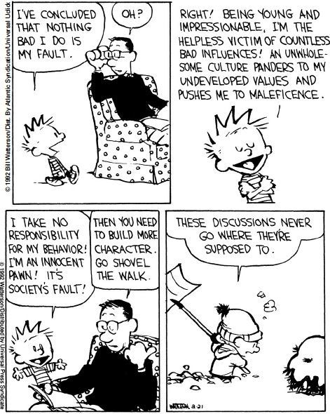 E. reclama que é vítima de valores que o levam a atitudes inadequadas.