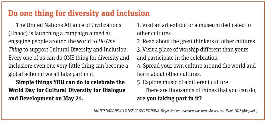 B. “Outro dia vi na TV uma reportagem a respeito da diversidade. Gente de todos os tipos, várias tribos. Curti bastante.”