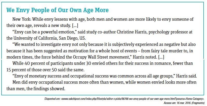 D. a inveja pelo sucesso amoroso dos outros é mais comum entre os mais jovens.