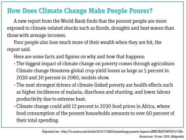 E. as regiões mais pobres estão mais expostas a fenômenos climáticos como enchentes e secas.