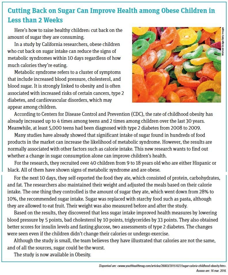 Os malefícios do açúcar ainda são muito subestimados pela sociedade. Segundo o estudo apresentado sobre a ingestão do alimento e a obesidade infantil, é correto afirmar que