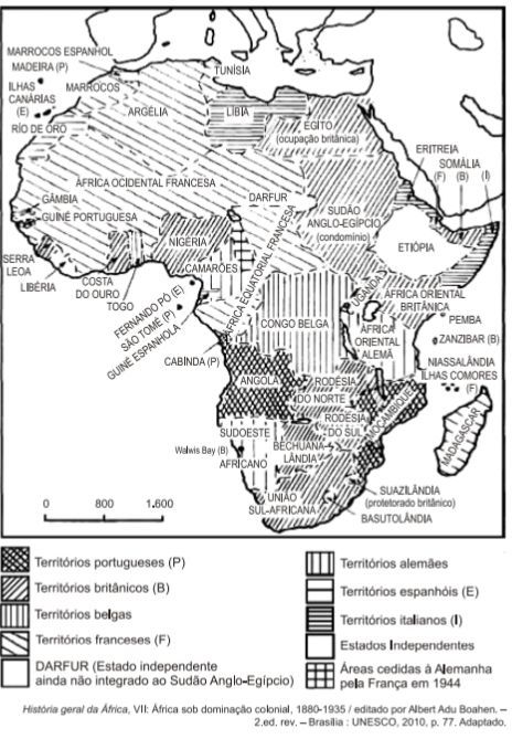 A atuação dos países europeus contribuiu para que a África – entre 1880 e 1914 – se transformasse em uma espécie de grande “colcha de retalhos”. Esse processo foi motivado pelo(a)