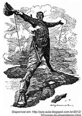 A charge faz referência ao capitalista Cecil Rhodes, que investiu no expansionismo imperialista inglês. Com base na charge e nos conteúdos referentes ao neocolonialismo, analise as segumtes afirmações: