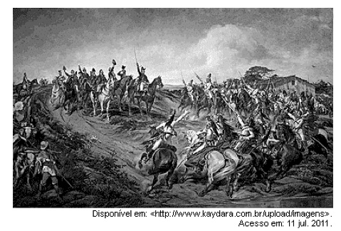A pintura é uma manifestação artística que pode ser utilizada como fonte histórica, reforçando uma versão da história. Nesse sentido, observe o quadro do pintor paraibano Pedro Américo. No campo da historiografia, essa imagem: