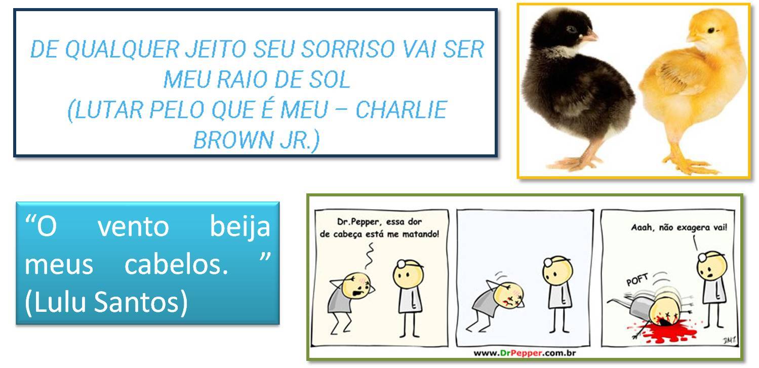 Identifique as figuras de linguagem presentes em cada uma das imagens.