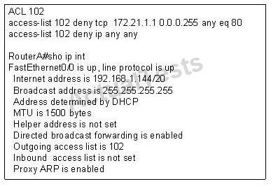 An attempt to deny web access to a subnet blocks all traffic from the subnet. Which interface command immediately removes the effect of ACL 102?