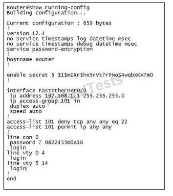 What can be done to secure the virtual terminal interfaces on a router? (Choose two.)