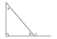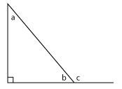 One right triangle has angles a and b. Another right triangle has angles b and c.
