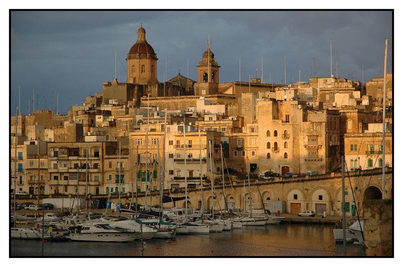 Fix-xatt tal-Birgu, insibu ħafna yachts u dgħajjes.
