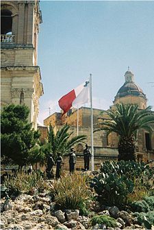 Hawnhekk hawn statwa sabiha ta' [blank_start]San Lawrenz[blank_end], il-patrun tal-Birgu. Hemm ukoll statwa ta' Malta [blank_start]Rebbieħa[blank_end]
