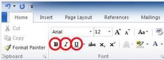The buttons pictured change your text to BOLD, ITALICS and UNDERLINE.