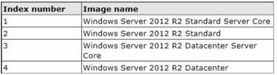 Your network contains a Windows Server 2012 R2 image named Server12.wim.Server12.wim contains the images shown in the following table. You need to enable the Windows Server Migration Tools feature in the Windows Server 2012 R2 Datacenter image. You want to achieve this goal by using the minimum amount of administrative effort. Which command should you run first?