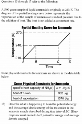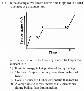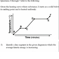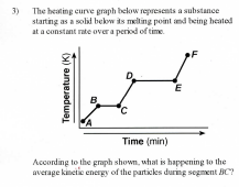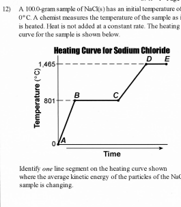 Identify one line segment on the heating curve shown where the average KE of the particles of the NaCl sample is shown.