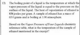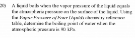 A liquids boiling point is the temperature at which its vapor pressure is equal to the atomic pressure. Using the Vapor Pressure of Four Liquids reference table, what is the boiling point of propane at an atmospheric pressure of 70 kPa?